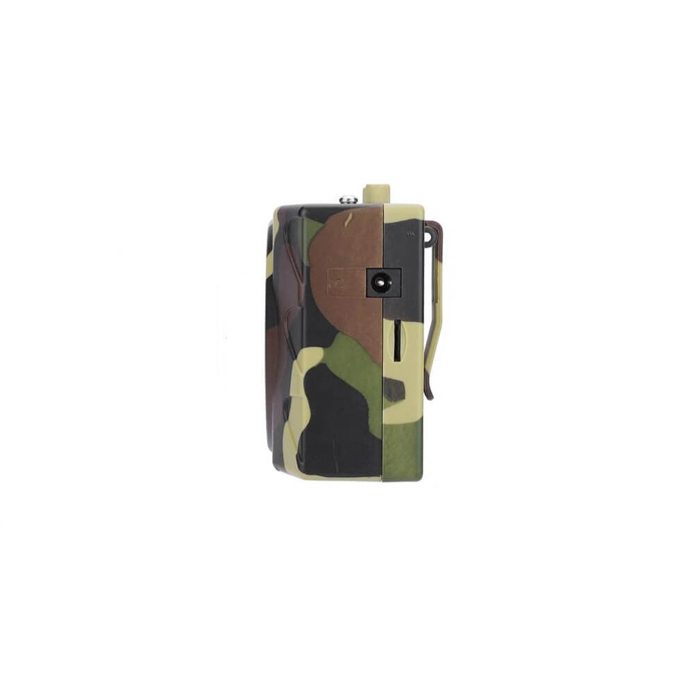 Электронный манок Hunter Sound E-89 в виде небольшого радио в цвете хаки используется для охоты на гуся, утку. Изделие воспроизводит в формате mp3 записанные реальные голоса птиц и приманивает других представителей к этому месту либо наоборот отпугивает от него в зависимости от выбранной программы. Электроманок изготовлен в пластиковом корпусе, оснащен крупным динамиком, кнопками управления и цифровым дисплеем, на который выводится номер записи. Возможно дистанционное управление с пульта в радиусе до 400 метров на открытой местности. Изделие работает от встроенного аккумулятора и держит заряд до 15 часов.